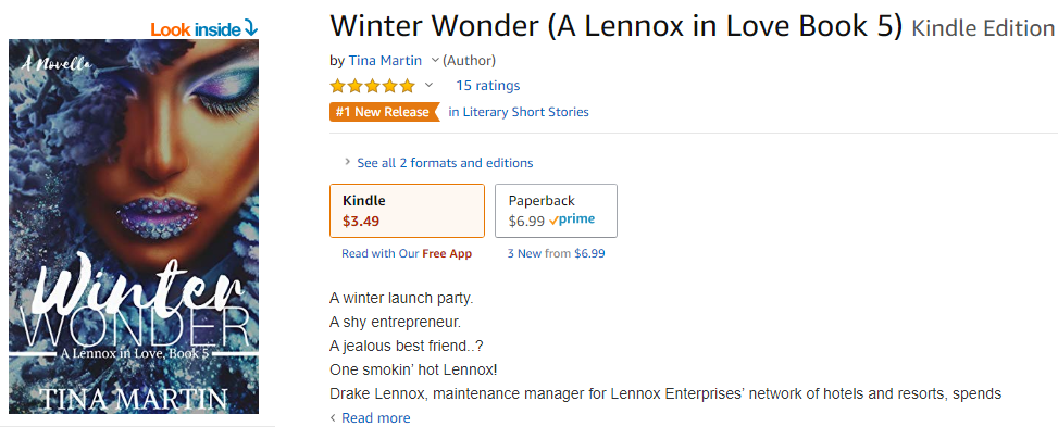 I'm releasing the last book of the year titled Winter Wedding. Winter Wedding is the follow-up novella to Winter Wonder. Winter Wonder was released November 22, 2019 and is still an Amazon #1 New New Release!
