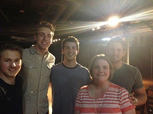 Also at the event was musician Griffin Peterson and his band. He partnered with Colleen Hoover on the book "Maybe Someday". The two main characters in that book are musicians who wind up writing songs together. Throughout the course of the book, you see their love develop in the lyrics they write together. I LOVED this book, but what made it even cooler was the fact that the songs the two characters wrote together weren't just words on the page... they were available on iTunes (and other places)! Griffin's work on the music to go along with this book is just fantastic. It's the kind of "groove" I really like these days - folky/bluesy rock. I've recommended it to several people already, but after seeing him perform live, I'll recommend it even more! Here's a snapshot of him during the performance, and one of me with him and the band - Griffin on the far right. (Again... reminding myself that I am 40, not 20!)