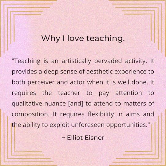 I’ve always loved teaching– I find it to be mysterious, creative, and beautiful. Elliot Eisner (eloquently) puts words to my own experience: