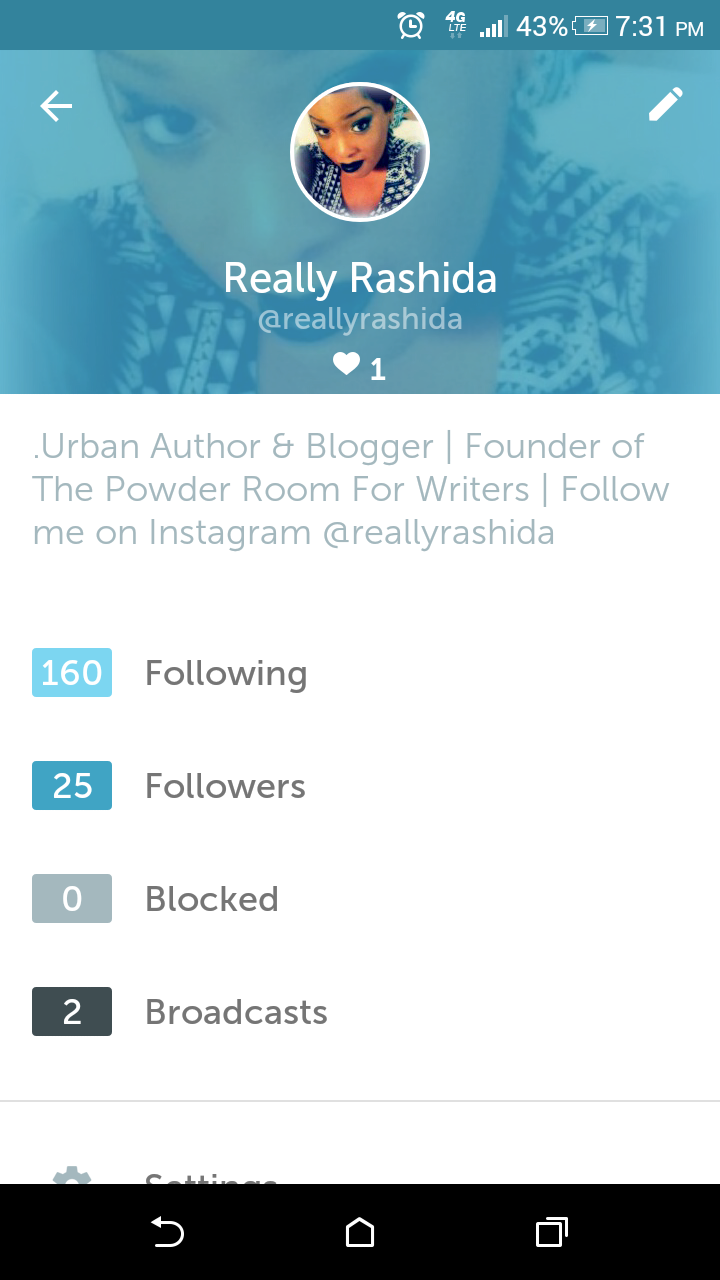 Hey, guys and gals. Follow me on Periscope!A photo posted by Rashida (@reallyrashida) on Sep 6, 2015 at 8:08am PDTI am COMPLETELY obsessed with Periscope! If you have no idea what I'm talking about, Periscope is a new live streaming app brought to the social media world by Twitter.