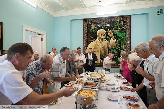 Ngắm những cụ ông cụ bà cựu công dân Liên Xô, ngực nặng huân huy chương ngồi nghe kể chuyện ngày xưa đánh giặc ở một xứ sở lạ hoắc, thưởng thức văn nghệ cây nhà lá vườn từ một sinh viên Việt Nam để kiểu tóc kết hợp giữa Kim Chính Ân và Kim Chính Nhật, ngoan ngoãn xếp hàng ăn buffet lèo tèo vài món cơm rang nem rán, rồi đứng nghiêm chụp hình lưu niệm để sang năm lại như thế, tôi chỉ thấy một cảnh thác ngộ thời đại, nửa gợi thương cảm, nửa gây cười. Không có gì chứng tỏ phía Việt Nam muốn giấu diếm hay thậm chí chối bỏ công lao của các bạn Xô-viết.