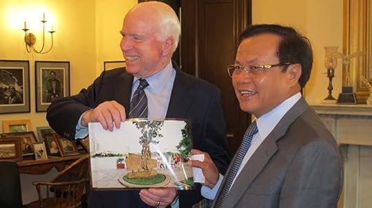 Song trưá»c những bà n luáºn xôn xao, ông Phạm Quang Nghá» Äã trả lá»i phá»ng vấn cá»§a báo Tiá»n phong, giải thÃch thêm, rất giản dá», vá» món quà Äặc biá»t Äó: “Ngoà i ra, trưá»c khi sang Mỹ, tôi ÄÆ°á»£c biết, ngà i John McCain từng gặp nhiá»u quan chức Viá»t và nhắn nhá»§ nhá» thà nh phá» Hà Ná»i giữ gìn vá» sinh cho khu vá»±c xung quanh tấm bia á» há» Trúc Bạch. Và Äó cÅ©ng là lý do tôi muá»n tặng ông ấy tấm ảnh.”