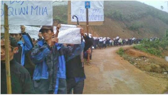 - FB Phạm Thành: Người H’Mong là một sắc dân thiểu số ở Tây Bắc Việt Nam. Họ từ trước tới nay có một hủ tục về mai táng. Ngươì chết trong gia đình không được chôn cất ngay mà phải chờ bà con dòng họ về đủ mặt. Những ngày chờ đợi bà con đủ mặt ấy thường là không ngắn ngủi, xác chết vẫn phải bón cơm cho ăn từng bữa và mọi ngươì ăn uống ngay trong căn nhà để xác. Hủ tục người chết phải được mổ heo mổ bò… rất tốn kém. Thời gian gần đây có một số người đem tín lý Tin lành / Thiên chúa giáo đến với cộng đồng dân tộc H’Mong, loại dần những hủ tục. Phía nhà cầm quyền vốn rất sợ các giáo phái Tin lành nên đàn áp rất dữ dội. Đây là cuộc biểu tình của hàng ngàn đồng bào H’Mong, kéo đến một tòa án để phản đối việc bắt giam (và đem ra xét xử) một người đồng đạo của họ, ông Thào Quán Mua.