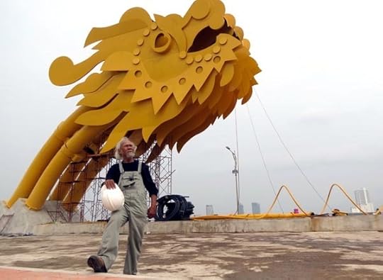 Có thể thấy ngay cái mỹ học màu mè ấy ở con rồng sắt bò trên cây cầu bắc qua sông Hàn, vàng choé và đồng bóng, nhìn xa như một cái cáng khiêng hòm, một món hàng mã hạng sang hay một thứ vật dụng trang trí phong thủy của người Trung Quốc. Nhưng tôi phải nói ngay rằng nhà điêu khắc này không phải là tác giả của mớ hổ lốn ấy. Cây cầu là tham vọng khẳng định mình của đám vua vùng, thứ lãnh chúa tân thời mà, đến thế kỷ 21 rồi, trình độ thẩm mỹ vẫn chưa thoát khỏi mỹ học “lân rồng” và phần việc của kẻ mệnh danh nghệ sĩ này, tập trung ở điểm nhấn đầu rồng, chỉ là tiếp tay phụ họa.