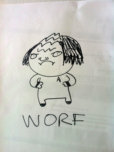 Even I'm amazed that this stuff came within me. It's just incredible stuff, but nothing, I say NOTHING, comes anywhere close to the heart-busting beauty that is this Worf drawing. I'd watch my back if I were you, whomever is lucky or cursed enough to get this drawing, because people will be after this piece and they'll stop at nothing to get it. GOOD LUCK.