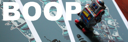 This time around it's a print with robots and an inventor lady who, I'm just gonna guess, makes robots. Each print is signed and has a custom, leaky, floating, disembodied robot head inked right onto it by one of my body parts (I'm not telling! HEEHEE!)