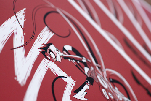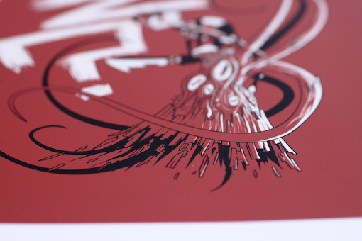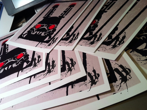 Like before, the prints are a practice run for a bigger edition of larger screen-prints or giclees to be done at some point in the future. At San Diego Con I had made printed just 25 Bolt Coughers, customizing them with hand painted ghosts. The final, larger version, is over at Gallery Nucleus, just waiting for you to buy it and eat it or whatever it is people do with my stuff.