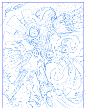 So here's a sketch. Been doing a lot of these, these little glimpses of what is clearly the Wall of Memory. Relaxing as anything can be just drawing this stuff, always has been. Screw-riddled flesh is as good a gateway to a zen state as anything, I figure. Some people have a glass of wine before bed, some people sketch writhing horrors. I've got a few piled up now, and I imagine I'll ink them at some point and then cook them up and eat'em. Not entirely certain. I'm sure if I get enough of these done I'll deposit them somewhere for people to find them, but I'm not quite there yet.