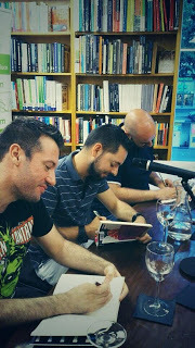 El pasado miércoles fue la presentación de Tiempo al tiempo, la antología de relatos históricos de carácter homosexual en el que he participado, como ya sabéis, con un cuento llamado "El arcoíris y el ruido". Presentó Diego Manuel Béjar, el editor y además autor del relato "La explosión" y me acompañaron Carlos G. García, autor del relato "Tres Españas" y Miguel G, autor de "Secretos". La verdad es que el libro ha quedado bastante divertido, es una especie de Érase una vez el hombre en plan gay y gracias a él he conocido cómo escriben autores estupendos, como por ejemplo, Sofía Olguín o Gustavo Liévano, de los que me declaro fan desde este mismo momento.