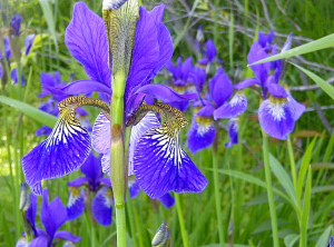 I photographed these irises while on the golf course on Saturday. It was the one sunny day when we could actually be outdoors out of a long stretch of rainy and cool, breezy days. The flowers also distracted me from my first golf game of the year, which is filled with moments of great hope (sinking a chip and a very long put and a few great drives) balanced by the realities of my actual level of play (3-putt anyone?) Golf is just that kind of game, and, in my case, it always makes sure that I come back by letting me play like I know what I’m doing on the last hole.