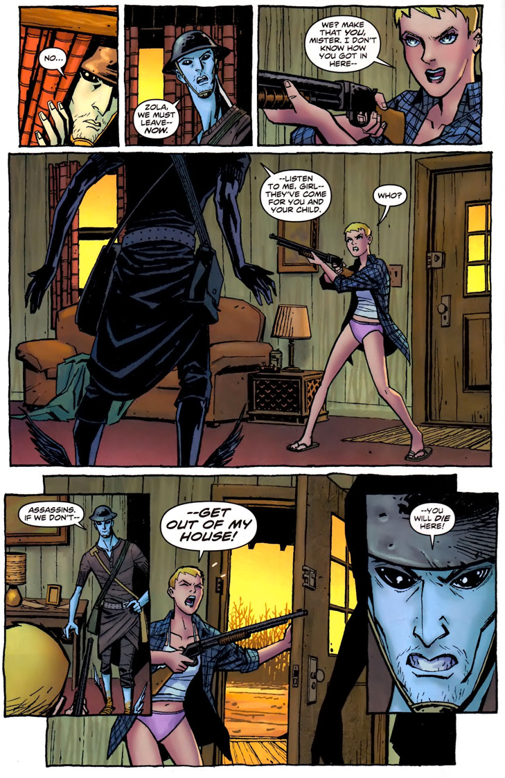 Cutesy quoted caption segue back to Diana and Zola, home from the club, apparently living together. They have a conversation that is unfathomable. New readers, if they hadn't already pitched this thing into the junk mail/cat hair receptacle do so here.Even comics savvy people not current with WW, like, oh, say, me, are baffled. Zola talks about her lost home, father in jail, undisclosed mistakes her mother made. And there's another suggestion that she's pregnant. Diana says "…the fact that I was created from clay." Zola responds, "But that's not a fact anymore."