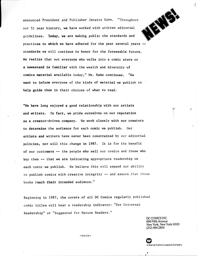 Anyway, the four of us had lunch. The reporter made a few notes, but mostly seemed content with our repeated denials that Marvel meant to take sides. We weren't aware that we had made any intimation that could be taken that way until the bomb threat.