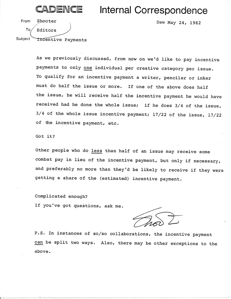 I spoke with Marvel's newsstand sales manager, Denise Bové. Denise was in charge of our dealings with Curtis. Like me, she felt the pendulum had swung too far. So did our Curtis account people.