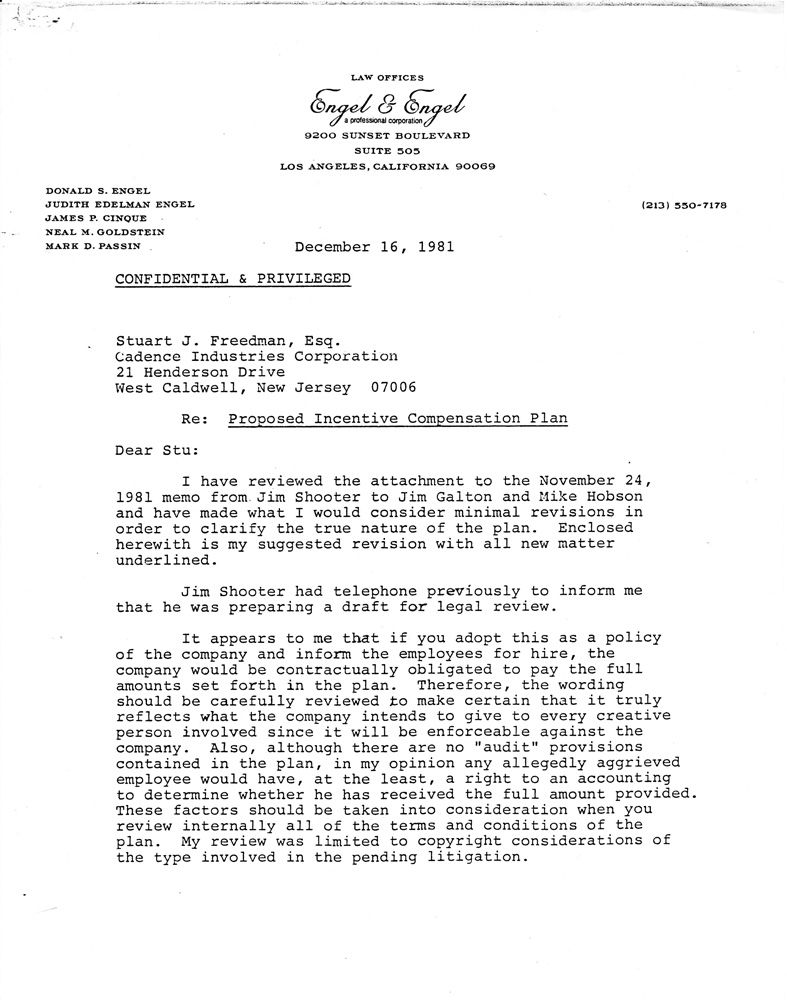 That would have been in 1986. At that point, I was engaged in daily battles with the President and the other owners of Marvel. The board of Cadence Industries, as "Cadence Management, Inc." had taken the company private. It was owned by the seven of them at that point. They got rid of one along the way, and then there were six.