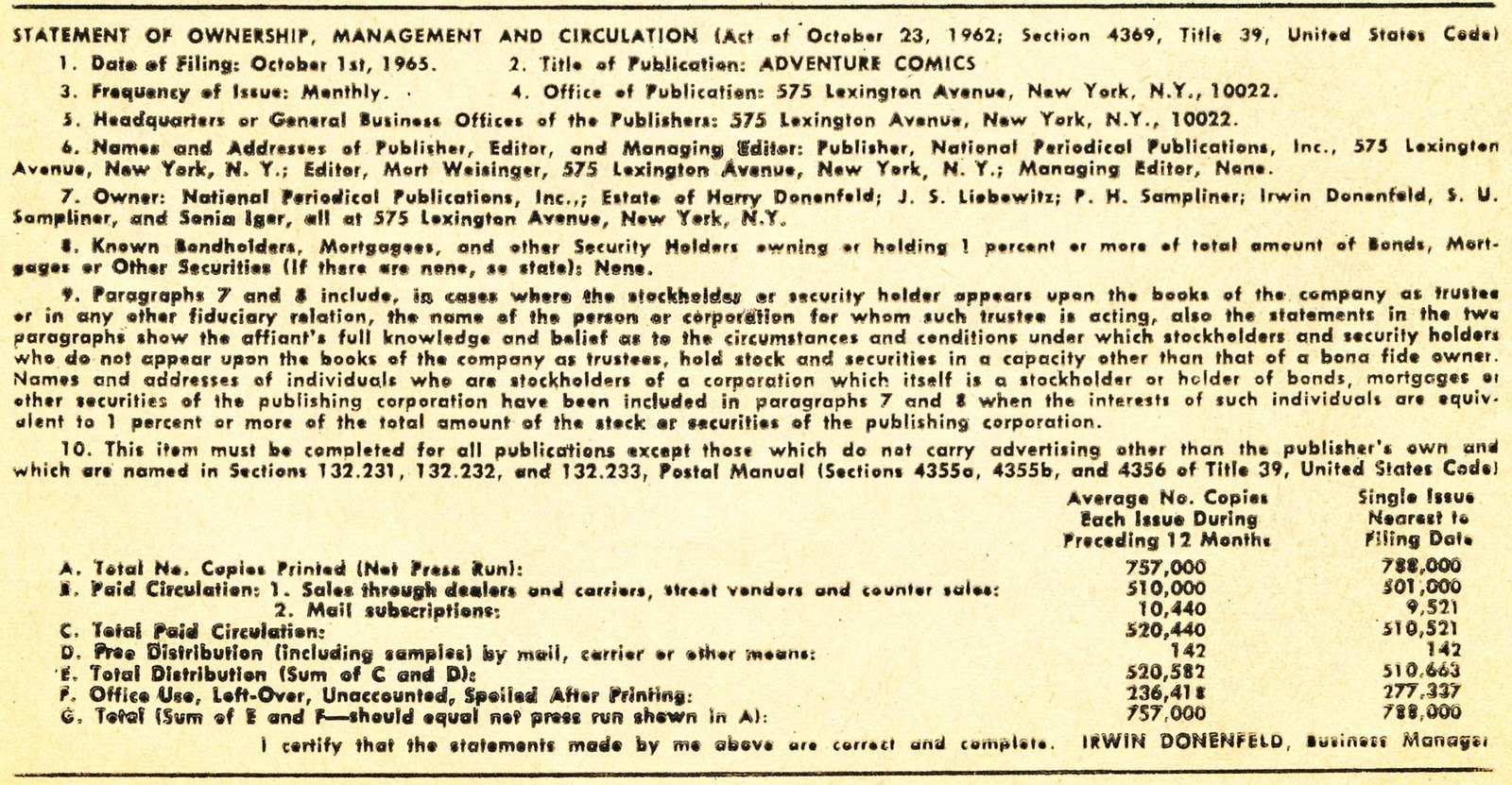 Here's a statement of ownership from the very first comic book of mine ever published, Adventure Comics featuring Superboy and the Legion of Super-Heroes #346, on sale around April 1966: