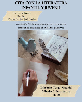 Sábado, 2 de octubre. Seis de la tarde. LIBRERÍA TAIGA (Madrid). Calle Arturo Soria 54.A la presentación de Madrid asistiremos: Mónica Rodríguez (Premio Cervantes Chico), Beatriz Giménez de Ory (Premio Nacional de Literatura Infantil y Juvenil), Paloma González Rubio (Premio Alandar), Chiki Fabregat (Premio Gran Angular), Pilar López Ávila (Premio New York Times), Carmen Ibarlucea, Pilar Alcántara y una servidora.No podrán acudir pero forman parte del proyecto: Paula Merlán, Susanna Isern, Indy García Acedo y la presidenta de la Asociación Cuéntame Algo Que Me Reconforte, Alicia Chamorro.
