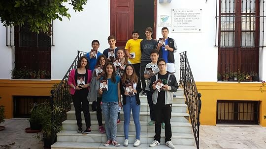 Con los alumnos de 1º de ESO del colegio Salesianos de Badajoz, a los que visité el pasado lunes, 4 de mayo, para mantener una charla sobre los dos primeros libros de Erik Vogler: "Los crímenes del rey blanco" y "Muerte en el balneario".