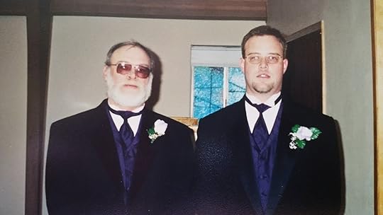 Dad & me at my sister's wedding May 6, 2000.In August, I finished the Ugly First Draft of Vanished. That would be a good thing, but I wrote it so Dad would have something of mine to read. I failed to complete it on time. That hurts, but at least I knew he liked the concept. I have no one but myself to blame. I dawdled. A lot. No really. A lot. Denial isn't just a river in Egypt, ya know.