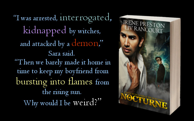 This has been a long time coming! Irene and I have been sitting on the cover of Nocturne for close to six months now, and we're both so excited to have it out in the wild! I love how it's distinct from Vespers, but still has the same feel. Our cover artist, Kanaxa, really did an amazing job!