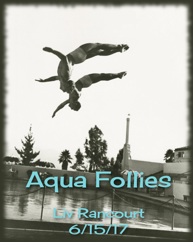 The director called for the Night at Club Aqua number and counted off a fast tempo. His baton flashed in the floodlights blazing from the edge of the stage. From the orchestra pit, the band hit the opening bars of “In the Mood.” Susie took off, diving into action with the other Aqua Dears. They spun through the water in a synchronized display, while the dancing half of their traveling troupe, the Aqua Darlings, took the stage dressed in sparkling blue skirts, white blouses, and low-heeled black shoes.