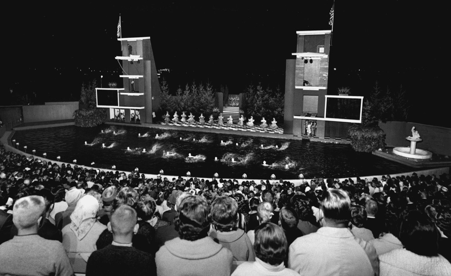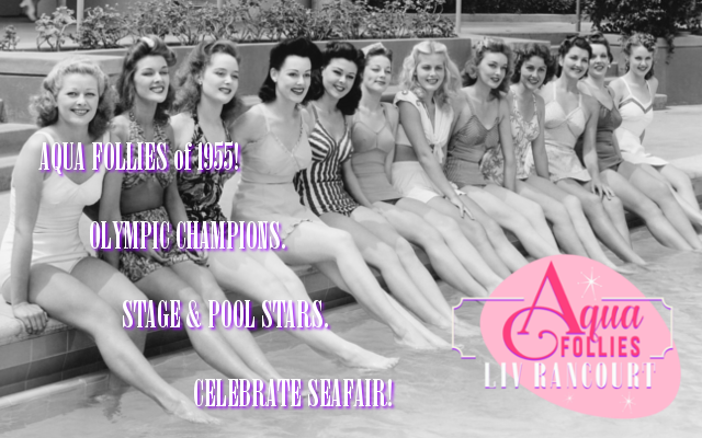 To celebrate, I thought I'd make a post that focuses on the real Aqua Follies, a variety show on water that was part of Seattle's Seafair celebration from 1950 until about 1962. The Aqua Follies had water ballet and dancers, a live band, clowns, divers, and guest performers who regularly sold out the 5000+ seats of the Green Lake aqua theater.