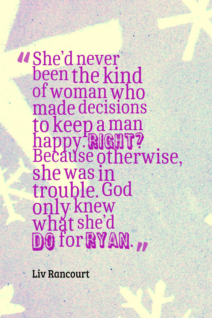 She nodded absently, studying the menu. Better to study the menu than the man in front of her.When the bathroom door clicked shut, air rushed from her lungs. She had to get a handle on this. This was Taylor. Boring old Taylor. Who cared if his body made him a little more interesting? Under it, he was still the same person who ignored her unless he needed something for work. It was probably her mind’s way of telling her she was ready to take the next step. There were other men out there if she wanted an entanglement. Men who talked. Unlike Taylor.
