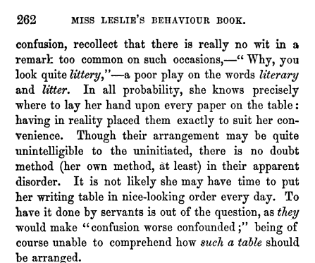 In case you were wondering how to interact with an authoress, this etiquette book from 1839 has some helpful suggestions, including accepting the state of an authoress’s writing desk: