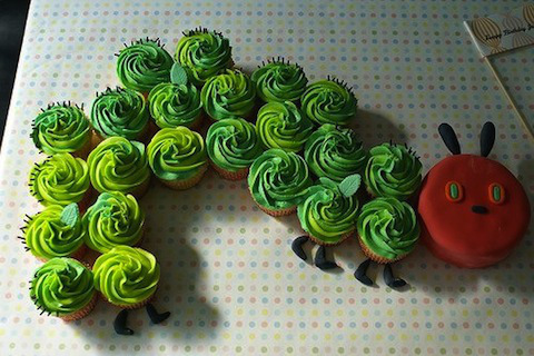 Books and baking are two of my favorite things, so these literary cakes are just what I needed on a Monday morning. My favorite, because it looks possibly doable, might have to be the Very Hungry Caterpillar cupcakes: