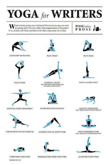 Considering I go to a yoga class I refer to as “naptime yoga” (big pillows! lots of easy breathing! a 15 minute rest at the end!), I am loving this Yoga for Writers poster by :