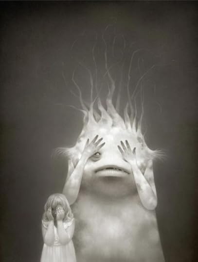 What dreamy, eerie, cool art. From the description for this piece: “Julia discovered him while she was collecting red-spotted salamanders in the swamp behind her parent’s farm house. She mistook the crown of branch-shaped tendrils on its head as a thicket of dead birch trees. The creature turned out to be quite harmless.”