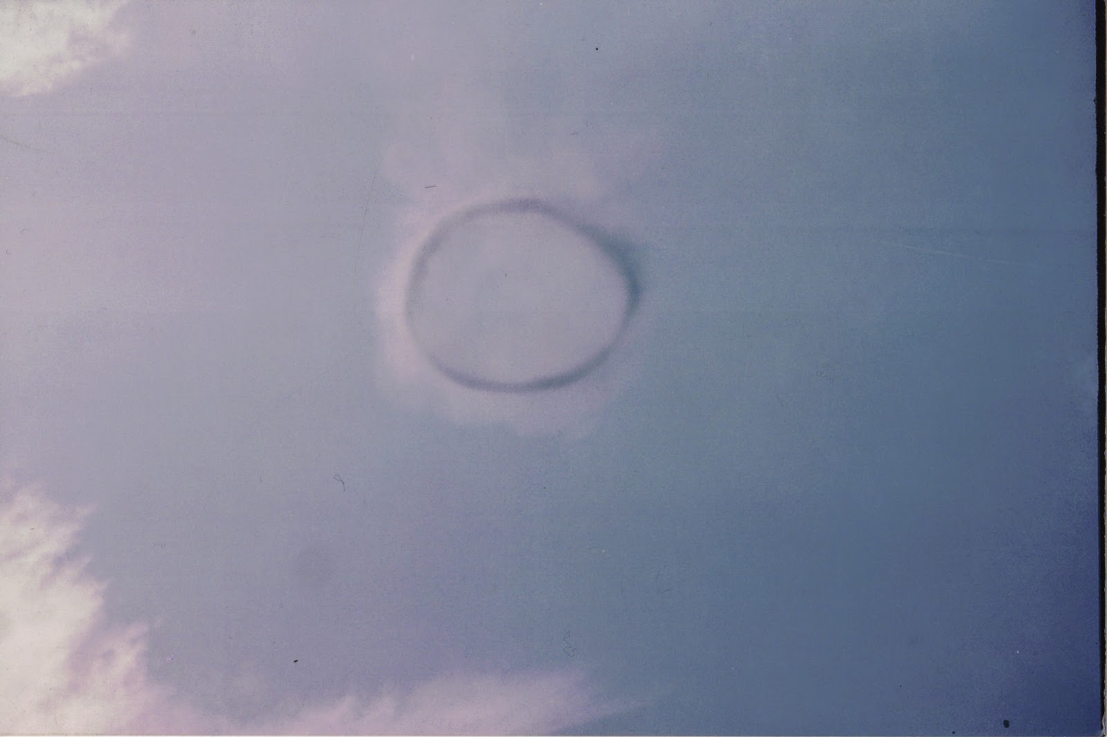 For the record, there's nothing weird about such smoke rings: my father took the above photo way back in the 1960s - at an airshow in England.