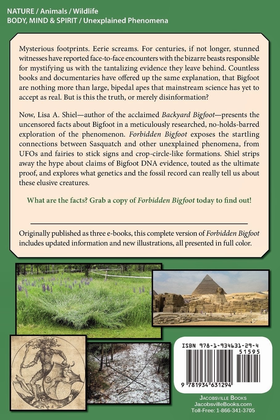"Now, Lisa A. Shiel--author of the acclaimed Backyard Bigfoot --presents the uncensored facts about Bigfoot in a meticulously researched, no-holds-barred exploration of the phenomenon. Forbidden Bigfoot exposes the startling connections between Sasquatch and other unexplained phenomena, from UFOs and fairies to stick signs and crop-circle-like formations. Shiel strips away the hype about claims of Bigfoot DNA evidence, touted as the ultimate proof, and explores what genetics and the fossil record can really tell us about these elusive creatures."