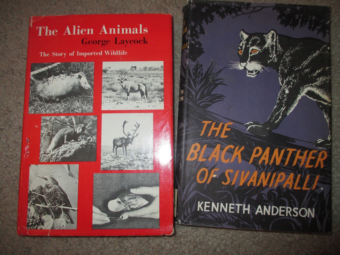 Picked up two cool, old, non-fiction books yesterday, George Laycock's The Alien Animals , and Kenneth Anderson's The Black Panther of Sivanipalli .