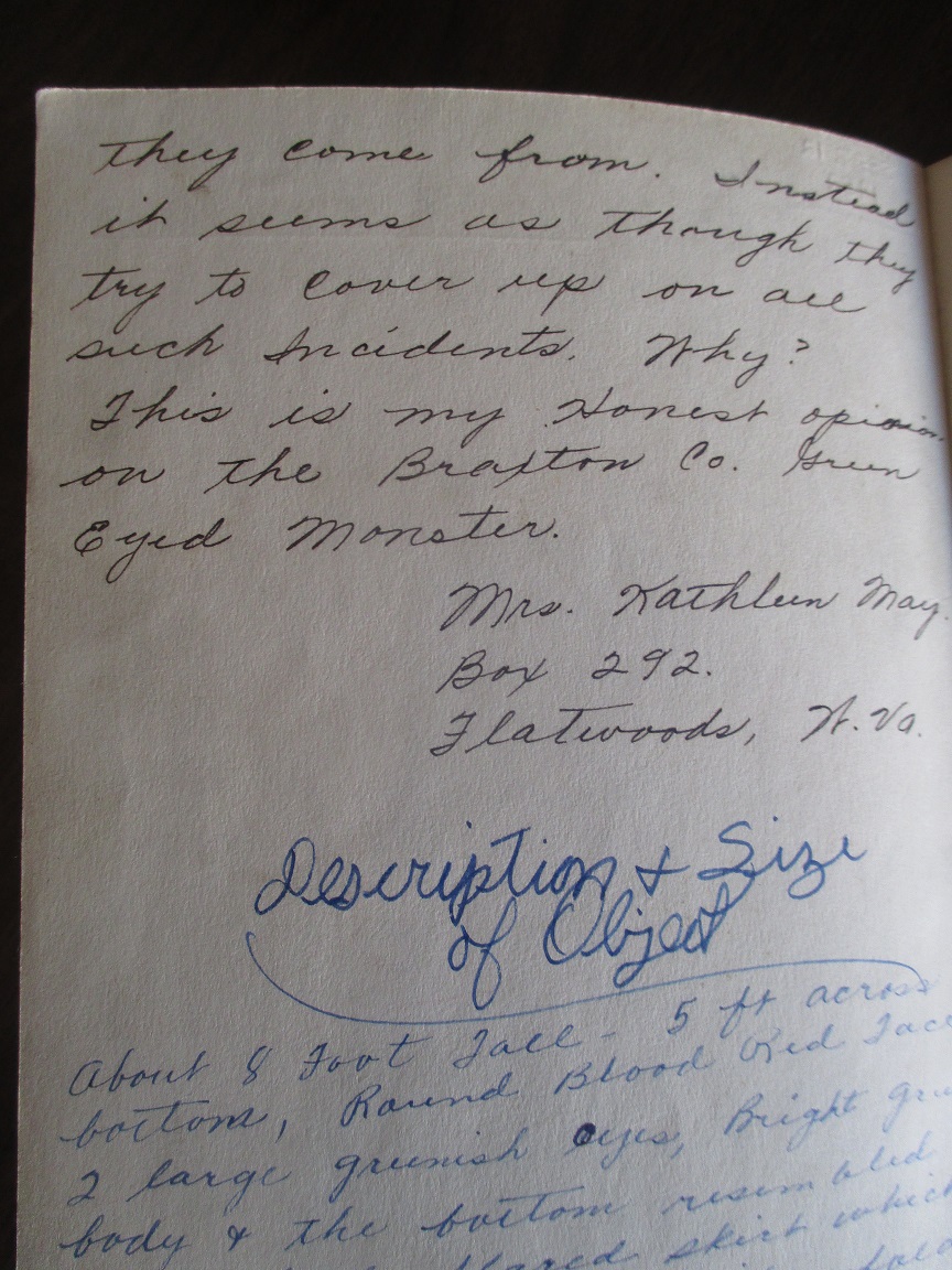 Also, as you'll see, David has a couple of items of note for those interested in the "Flatwoods Monster" saga of 1952 - including one publication which has a 3-page hand-written statement from Kathleen May, one of the original witnesses.