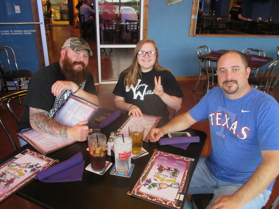Had a great day Saturday, hung out with good mates Kyle Philson and Cameron Hale and Beth Arzy , although Beth was there in spirit - kind of, as her bottle-opener was there! Hung out at the guys' studio, did an interview, then an excellent dinner of Crawfish Etouffee at a local Cajun restaurant.