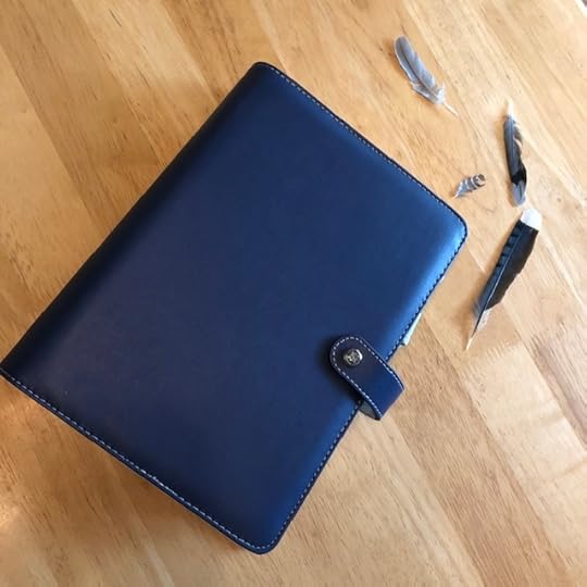 I had difficulty finding anything I wanted. One thing I knew I wanted for sure was a navy blue binder that I could dress up in Ilmenhith’s colors, so I’d have a planner inspired by my own stories. Turns out navy planners are hard to find–it doesn’t seem to be a very “in” color. I found one from Webster’s Pages, but I could never justify the cost.
