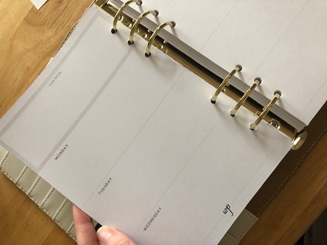 While I really like the gold accents and the transparent lettered page at the front, I found I wasn’t super in love with the colors in the rest of the insert. I wasn’t totally attached to them, fortunately, since I was planning to customize the planner anyway.