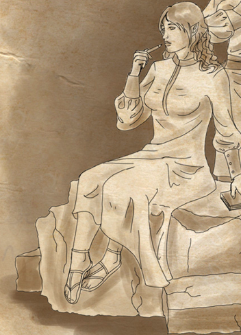 I’d drawn the mage robes a few times before; they’re pretty simple, but they’re supposed to be functional and standard issue, so they couldn’t be anything fancy. You can see one of the really old sketches here. Firal’s wearing something similar on the cover of book 2.