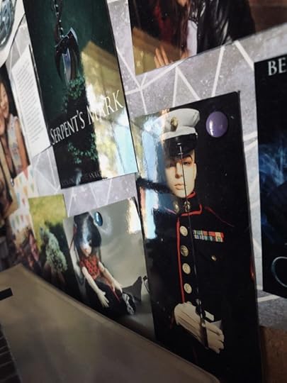 I put my mockup cover for a book I want to publish more than anything in the middle of one side, and put covers of other titles I’ve published or am working on around the edges. I pinned it all against some pretty colored paper to make it a little cheerier, then put the board on my desk.