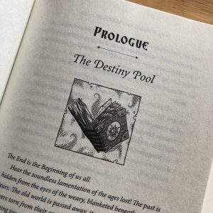 I actually really like that layout–it’s similar to what I have in mind for my own fantasy books. The image used is definitely the sort of artwork you’d see used on item or skill icons in a video game, so that should appeal to their target market. But after the prologue, we have the first section break.