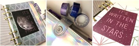 I set up some dividers inside using scrapbooking paper my parents gave me for Christmas that I wanted to use, but didn’t know how to utilize. The prismatic color schemes and designs work perfectly with the shimmering holographic cover. I’ve got some pretty washi tape set aside to add color pops, and I’ll be designing some series-specific stickers for a little extra fun, but right now, I’m focusing on how to use this to help my writing.