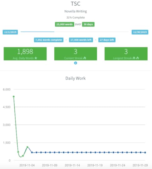 Okay, so being completely honest and fair, the first day was a wild cheat. The first day, I reread and revised what I’d written for To Steal the Crown over the past few months. I added a few words, but honestly, I didn’t track how many. To keep everything clean and organized for this month’s unofficial participation in NaNo, I then scrapped the Pacemaker tracking I had established for this book and put all my already-written words down as work logged on the first day. Not factual, but convenient, so I went in with a big chunk on day one.