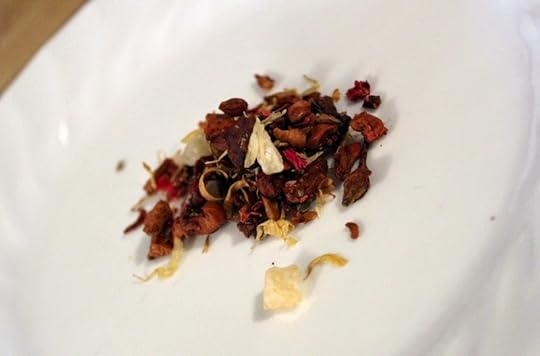 An herbal blend made with candied pineapple, bits of apples and just a bit of orange, it was definitely fruity, but I expected something sweet. Yikes!