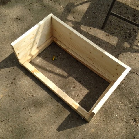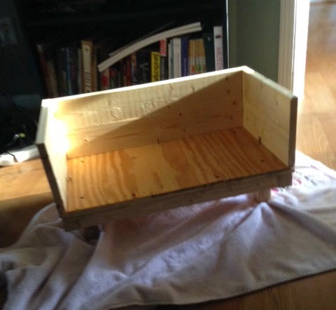 Then I put the plywood in between, screwing it first to the sides and back, then screwing it down onto the frame and adding the legs.