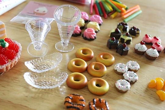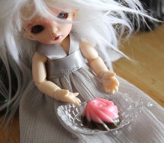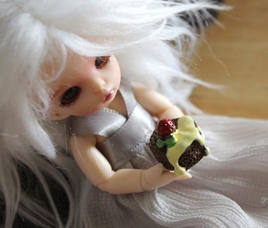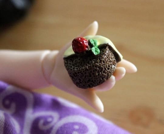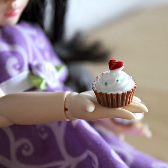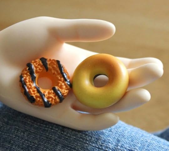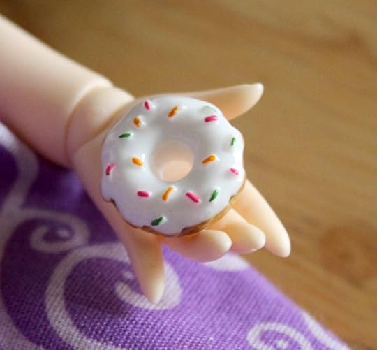 On the whole, I’m happy with the order, though I can only recommend use of decoden cabochons as props for YoSD and smaller BJDs. The others are just too tough to match, though I was lucky to get as close as I did. If I had it to do over, I’d get fewer of the unfinished donuts and white donuts, skip the puddings and ice cream dishes, and get more tiny cakes for my PukiPuki instead.