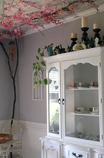 So cherry blossoms it was. Sprawling, crawling across the ceiling. Not all of the branches match, but we bought everything they had. We’ll fine-tune it later, using the ones that don’t match so well for arrangements in pots or vases.