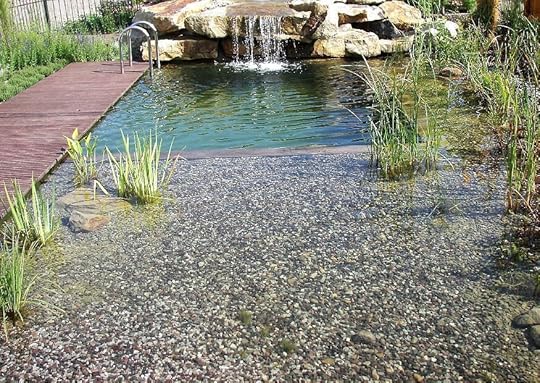 สระว่ายน้ำแบบธรรมชาตินั้นไม่ได้ใช้เคมีบำบัดครับ แต่เปลี่ยนคำว่าเคมี เป็นธรรมชาติแทน เปลี่ยนจากการเติมคลอรีนหรือเติมเกลือ (จนแบคทีเรียในน้ำตายห่าหมด น้ำจึงสะอาดใส) กลายเป็นใส่พืชน้ำให้มาบำบัด และเติมออกซิเจนอากาศลงไป อาจจะด้วยการทำปั๊มน้ำผุด น้ำพุ น้ำตก หรือกังหันน้ำก็ว่าไป แต่แกนของมันก็คือปล่อยให้ธรรมชาติสร้างสมดุลขึ้นมาเอง