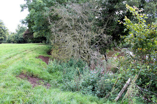 But all is not well. The river levels have been high and it doesn't take much rain to turn it into a raging torrent. All along the banks there's evidence of slippage, as the river eats into the soil and undercuts the trees until they fall. Some farmers have been planting willows to slow the onslaught.