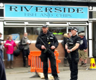 It's Appleby Horse Fair weekend - all hatches battened down, windows boarded up, roads closed and the most intensive police presence I've ever seen. Armed police were particularly visible - not a normal occurrence.
