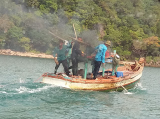 We’ve just had a clear demonstration of the realities of defending a very fragile environment. The Marine Conservation organisation have a fast patrol boat funded by a Canadian environmental protection group and it was asked to go out yesterday to check out a Vietnamese fishing boat not only in Cambodian waters, within the conservation area, but also suspected of illegally ‘pipe-fishing’.
